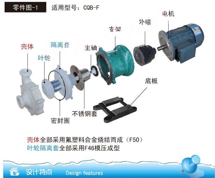 CQB氟塑料磁力泵的設(shè)計(jì)不僅具有普通磁力泵的結(jié)構(gòu)緊湊,外型美觀,體積小,躁聲低,運(yùn)行可靠等優(yōu)點(diǎn),且其過(guò)流部件全部采用目前世界上耐腐蝕性優(yōu)秀“塑料王”(氟塑料)制造,隔離套采用特殊材料制造,具有高強(qiáng)度的力學(xué)性能,消除了普通磁力泵存在的磁渦流現(xiàn)象。因此,CQB氟塑料磁力泵可輸送任意濃(強(qiáng))度的酸、堿、氧化劑等腐蝕性介質(zhì)而毫不受損。